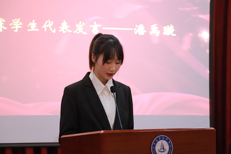 参赛学生潘禹璇代表获奖同学发言,她表示本次技能文化节的举办是积极锻炼发展自身职业技能、提升职业素养的一次具体体现,亲身体验,动手实践,这既是一场比赛,也是加深对专业知识的理解和把握。