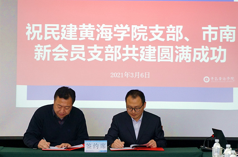 冰球官网举行民建黄海学院支部与市南区新会员支部共建签约仪式