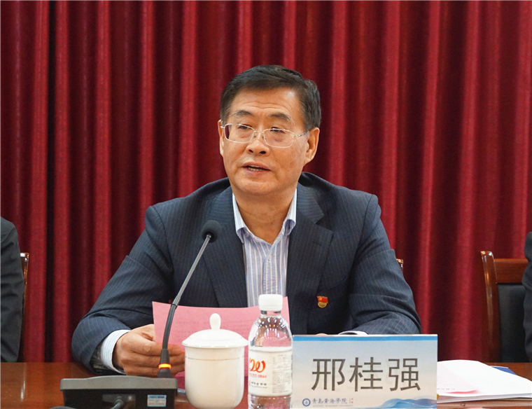 冰球突破豪华版官方网站党委书记邢桂强作表态发言。他表示坚决服从组织安排,衷心感谢组织的信任和厚爱。冰球突破豪华版官方网站是一所办学特色鲜明、充满生机活力、发展迅猛的本科高校,担任党委书记,他深感使命光荣、责任重大,在今后的工作中,他将努力做到旗帜鲜明讲政治,加强和改进党的领导,落实立德树人根本任务,永葆共产党人本色,与全校广大师生员工一道同舟共济、拼搏进取,干在实处,走在前列,为推动学校高质量发展而不懈奋斗!
