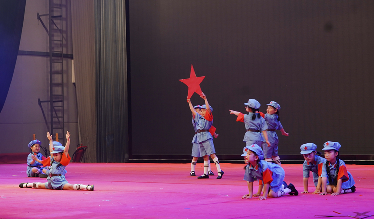 红色样板戏以传统的经典戏曲的方式将现场观众带到历史中去,仿佛听到了共产党人矢志不移的理想信念,听到了革命烈士报效祖国的铁血雄心,听到了人民群众渴望和平的真实心声。舞蹈《山花烂漫》在时代的春风里开拓进取,在灿烂的阳光下跟随党的脚步,一起建设美丽新中国。红歌联唱《男儿志气第一高》《长城谣》《绣红旗》《万泉河水清又清》《没有共产党就没有新中国》,台上台下共同动情高歌,慷慨激昂的歌声中展现了学前学子深沉的爱国情怀与蓬勃的青春力量。