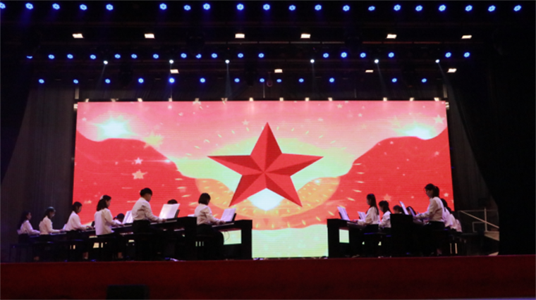 舞蹈《额尔古纳河》是典型的蒙古族舞蹈作品。歌曲《十送红军》带领观众重温了红军的光辉历程,带给现场观众直抵心灵深处的触动。钢琴联奏不仅展示了学前教育学院学子对祖国的热爱之情,也展现了我院学生扎实的钢琴演奏技术。教师朗诵《红色诗篇》和学生朗诵《中华颂》怀着对中国共产党的热爱,带领观众一同穿越历史的烽烟,重温党的辉煌历程。红色的记忆镌刻在一代代中华儿女的心中,中华大地上的各民族风俗各异,但唯有对红色的向往始终如一,同学们以真挚的感情、扎实的功底,演绎了歌舞《那一抹高贵的红》,唤起了现场观众心中的那段红色记忆。