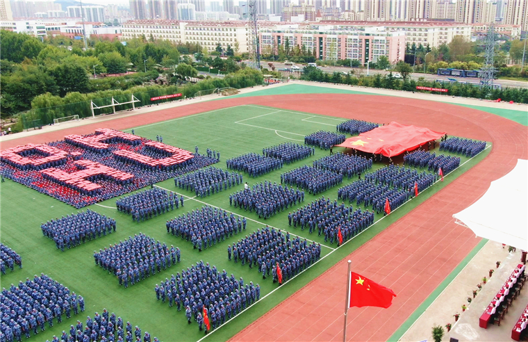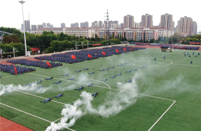伴随着雄壮的国歌,五星红旗缓缓升起,大会正式拉开帷幕。校长王渊明检阅受阅方队。在鲜红的军旗引领下,受阅方队依次接受检阅,他们目光坚毅、昂首挺胸、气势如虹,向着崭新的未来,阔步前行。