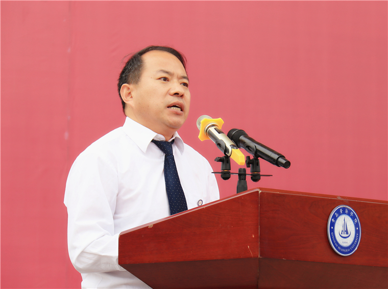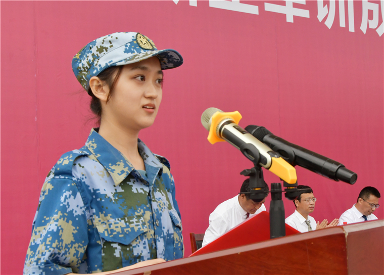梁忠环副校长在大会上讲话,他希望同学们将特别能吃苦、特别能战斗、特别能奉献的军人精神、军人气质融入今后的学习、生活、工作之中,展军容风姿,成巾帼须眉。炎黄子孙,气宇轩昂,生逢其时,重任在肩,愿得此身长报国,何须生入玉门关,希望同学们争做时代的奋进者、开拓者、贡献者,成为堪当民族复兴大任的时代新人。
