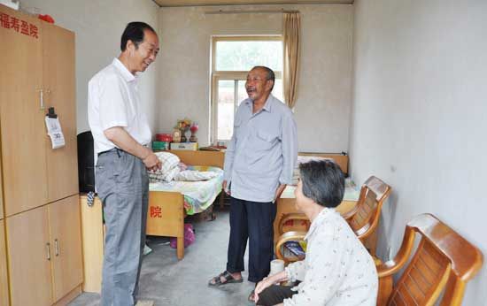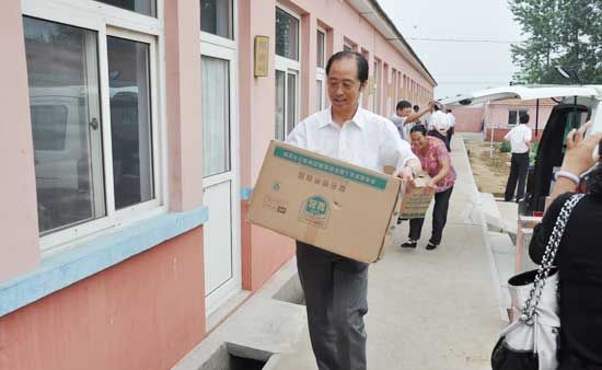 上午9时王站长与胶南市统战部领导一同来到琅琊镇中心敬老院,把准备好的核桃粉、黑芝麻糊以及水果送给孤寡老人,并向敬老院领导转达了刘常青董事长的关爱之情。