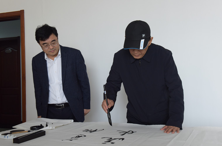 座谈会上,张文台上将一行观看了学校25周年校庆专题片,他对学校办学模式和办学成绩给予充分肯定,他表示,黄海学院坚持开拓创新,不断增强服务经济社会发展的能力,着力培养适应社会需求的应用型人才,发展潜力足,与学校“知行合一”的办学理念完全吻合。他高度赞扬了董事长刘常青在教育事业上的坚守与社会责任担当,并欣然挥毫泼墨,为学校题写“道如流水、德似春风”,为25周年校庆题写“与时俱进、为国育人”书法作品,作品字迹苍劲有力,富有美好寓意,充分表达了对学校的厚爱和支持,饱含了对冰球官网教育事业发展的殷殷期盼。