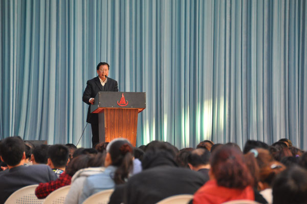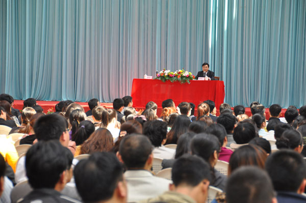 4日上午,首先邀请了山东电视台天下父母栏目组导演吕明晰为全体教职工作了《实现中国梦 从我做起》弘扬优秀传统道德的演讲,吕导演以党的十八大报告为切入点,通过弘扬中国优秀传统文化,倡导大行孝道以加强师德建设,从而提高教书育人的水平,为社会培养更多的优秀人才。冯宜明书记在在主持报告会时指出,“中国梦是全国人民的梦,也是我们每个教育工作者的梦。教师是神圣的职业,教育工作者的天职是为人师表,立德树人。我们要从自身做起,志存高远,修身治学,敬业奉献,唤起青年学生追梦、圆梦的热情和行动,坚守教师的道德高地。”