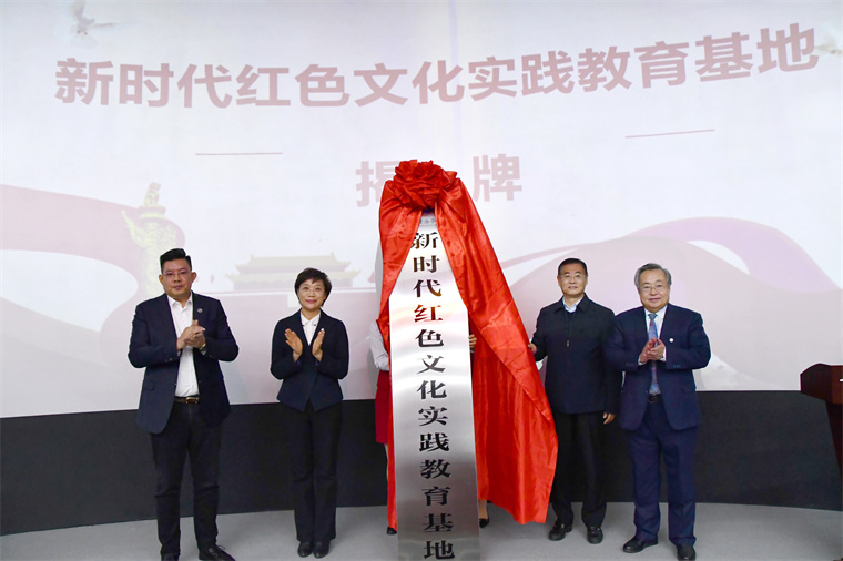 仪式上,张成霞、张艇亚、邢桂强、朝克吉勒图共同为基地揭牌。张成霞在讲话中指出:实现新时代红色文化实践教育基地高质量发展是传承红色基因,培育时代新人、坚定文化自信的需要,是讲好中国故事,提升国家文化软实力的需要,也是弘扬民族精神,实现中华民族伟大复兴的需要。她希望基地能成为传承红色基因的重要窗口,成为高校思想政治教育实践教学的重要场所,积极开展内容丰富、形式多样的实践课程体系,发挥好立德树人作用,具备更强的服务社会能力。