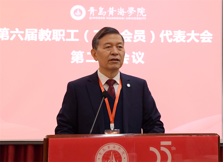 上午8时20分,“双代会”在庄严雄壮的国歌中正式开幕。校长王渊明代表学校作了题为《站在新起点 展现新作为 奋力书写高水平应用型大学发展新篇章》的工作报告。报告对学校2021年的工作做了全面回顾,对2022年的工作进行了全面部署。他指出,2021年是中国共产党成立100周年,是学校建校25周年,也是“十四五”规划开局之年。学校坚持以习近平新时代中国特色社会主义思想为指导,全面贯彻党的教育方针,坚持立德树人根本任务,统筹抓好常态化疫情防控和各项工作,学校事业发展取得了新成绩。2022年,学校将立足新的发展阶段、贯彻新的发展理念、构建新的发展格局,牢牢把握立德树人根本任务,坚定不移地贯彻新时代山东高等教育高质量发展战略,统筹推进疫情防控和学校各项工作,按照学校“十四五”事业发展规划制定的目标,以应用型本科高校建设助推学校高质量发展,以本科审核评估为契机强化教育教学改革,以绩效改革推动学校治理效能建设,进一步提升人才培养质量和社会服务水平,推动学校发展再上新台阶。