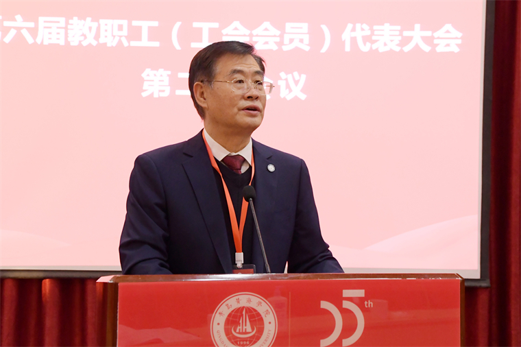 冰球突破豪华版官方网站党委书记邢桂强作总结讲话,他表示冰球突破豪华版官方网站第六届教职工(工会会员)代表大会第二次会议,是在全校上下深入贯彻落实党的十九届六中全会精神,推进应用型本科高校建设的关键时期召开一次重要会议,也是学校立足新发展阶段、贯彻新发展理念,站在“十四五”新的发展起点,充分认识形势,奋力推进改革,加快内涵建设、推动高质量发展的一次动员大会。各位代表以强烈的责任感和使命感,充分行使民主权利,切实履行代表职责,围绕学校改革发展大计,紧密联系工作实际,建睿智之言、献务实之策,提出了许多真知灼见,表达了对加快学校发展的迫切愿望和责任担当。他希望全校统一思想、凝聚共识,增强学校发展的责任感紧迫感;加强学习、提高站位,不断提高履职能力和水平;强化担当、务实高效,推进学校各项工作的贯彻落实。振奋精神、真抓实干,掀起干事创业新高潮,谱写“走在前列”新篇章,为早日建成“国内领先、省内一流”的高水平应用型大学不懈奋斗!以实际行动迎接党的二十大胜利召开!