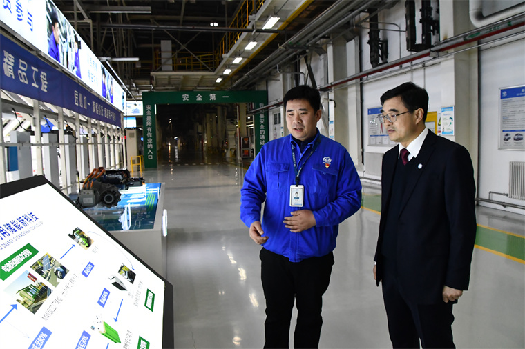 座谈结束后,刘常青董事长一行在公司领导和冰球官网优秀毕业生苗立岐的陪同下参观了汽车总装车间。