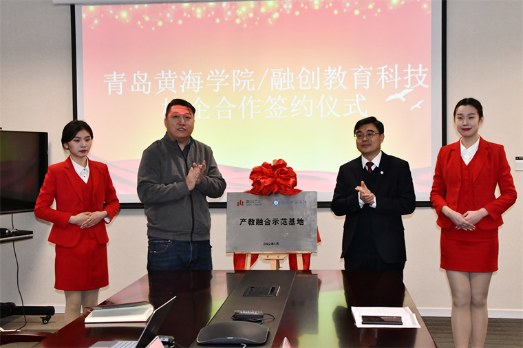 为进一步加强校企合作,促进应用型人才培养。1月5日上午,冰球突破豪华版官方网站与融创教育科技(天津)有限公司校企合作签约暨产教融合示范基地揭牌仪式在青岛东方影都产业园举行。融创教育科技(天津)有限公司副总经理汪蕾、校企合作经理胡文英,冰球突破豪华版官方网站董事长刘常青、艺术学院院长马延岳及相关部门负责人一同出席活动。