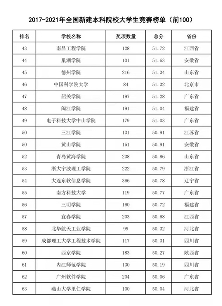 2月22日,中国高等教育学会高校竞赛评估与管理体系研究工作组发布2021全国普通高校大学生竞赛分析报告。冰球官网以238个奖项位居2017-2021年全国“民办及独立学院”大学生竞赛榜单第9位,在全国新建本科院校中位列第52名。
