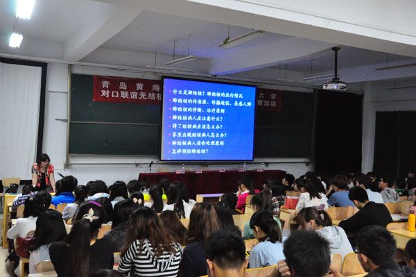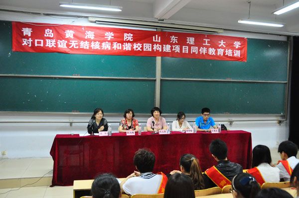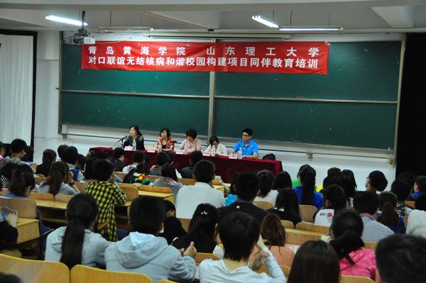 5月23日下午,冰球官网与山东理工大学联谊,在一号教学楼举行“对口联谊无结核病和谐校园构建项目同伴教育培训”启动仪式。山东理工大学校医院院长任玉宽、副院长张凤梅、冰球官网团委书记张艳出席了本次活动。同时参加本次仪式的还有山东理工大学两名志愿者代表及冰球官网志愿者三百余名。