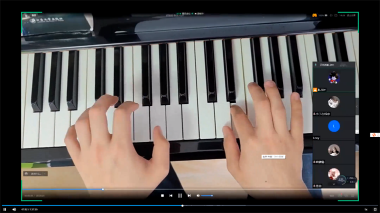 线上教学与线下教学存在很大区别,尤其是像钢琴这种实操性的技能课,设备的角度尤为重要,一节课我使用第一视角录制了15个实操性的示范视频,可以使学生更直观的学习钢琴指法及演奏技巧,课后上传到学习通APP,方便学生课下复习。在课堂互动中,我与学生一对一视频连麦,公屏播放学生的弹奏现状,对学生的演奏问题进行辅导答疑,既可以解决学生个人学习问题,也可以使其他学生在弹奏时能够避免此类错误再次出现,真正做到讲练结合。