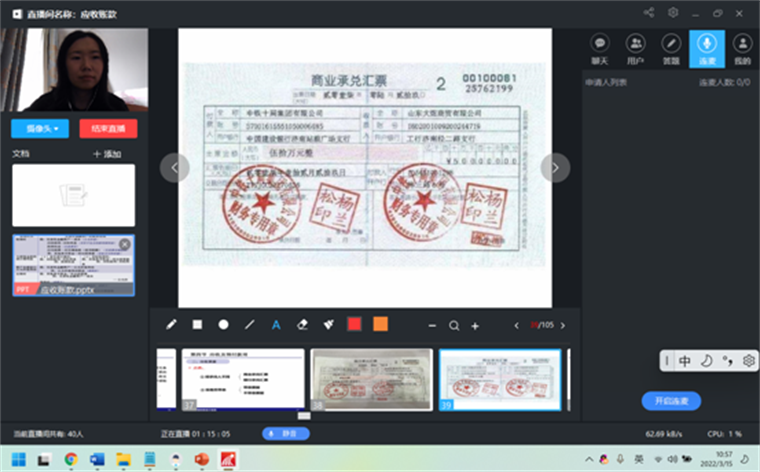 我的《中级财务会计实务》线上教学采用了超星学习通直播的方式进行,学生在直播间可以同时看到教师出镜的直播界面以及对应的文档资料,如PPT、书写白板等,直播参与体验较好。另外,课程在直播过程中,可以与学生进行连麦、聊天等实时互动,并能同时在学习通发放随堂测验等小测试,在提高学生端直播参与度的同时,可以实时了解学生的学习情况,随时调整讲课进度。