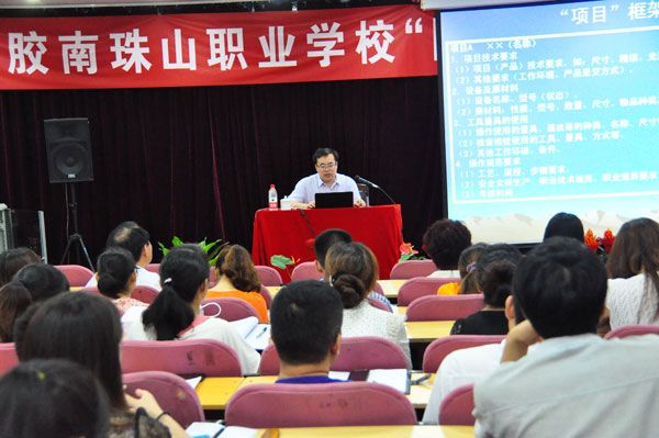 7月7日上午,山东省职业教育教研室主任杜德昌到冰球官网举行关于国家改革发展示范学校项目建设的报告会,青岛胶南珠山职业学校领导和各项目建设组负责人、教师聆听了报告会。报告会由珠山职业学校副校长梁忠环主持。