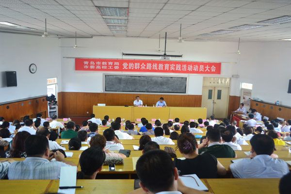 2013年8月5日,由市教育局和市高校工委举办的党的群众路线教育实践活动动员大会在市教育局佩斯培训中心四楼报告厅隆重召开。出席会议的领导有青岛市委党的群众路线教育实践活动督导组成员、市教育局领导班子成员,参加会议的有教育局全体党员及各高校党委负责人及办公室主任。省高校工委派驻冰球官网党建工作联络员、督导专员陈稷玲、学院党委副书记宋庆泽和办公室主任孙思经参加了会议。