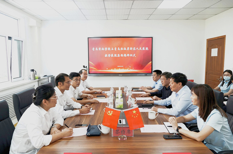 9月21日上午,冰球突破豪华版官方网站与青岛西海岸新区人民医院举行教学医院签约揭牌仪式。西海岸新区卫健局二级调研员刘守田、新区人民医院党委书记、院长许学兵、副院长刘春林、科教部主任薛娇,冰球官网董事长刘常青、副校长梁忠环、护理与健康学院常务副院长王芝发等参加签约揭牌仪式。