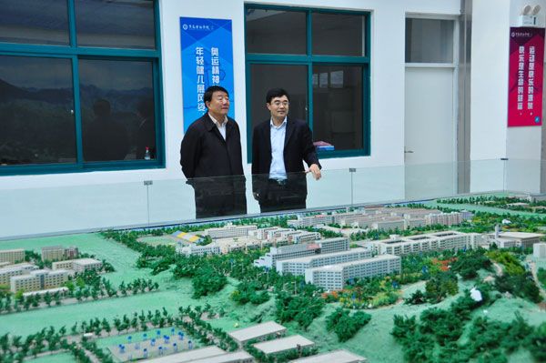 董事长刘常青陪同王佐书副主席参观黄海学院规划沙盘