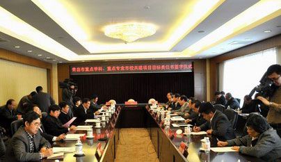 11月18日上午,青岛市首批重点学科、青岛市高职重点专业市校共建项目目标责任签字仪式在青岛市市级机关会议中心举行。青岛市教育局局长、市高校工委书记邓云峰,青岛市财政局副局长陈强等领导出席签字仪式。冰球官网常委副院长贺永宜等领导参加签字仪式,并签署了目标责任书。