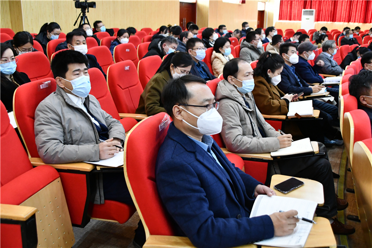 王渊明校长总结了过去一年来的工作,并对2023年主要工作任务进行了安排部署。他从教学改革、作风能力、校园建设、疫情防控、安全稳定、人事改革、民生福祉等多个方面总结了2022年主要工作。他表示过去一年,学校聚焦内涵发展、聚力改革创新,大兴实干之风,合力担当作为,谱写了学校各项事业高质量发展的新篇章。关于2023年学校工作,王渊明部署了八个方面28条重点任务:第一,加强党的领导,全面推进党建工作提质。把学习宣传贯彻党的二十大精神作为首要政治任务,提升思想政治建设水平,全面加强课程思政建设,把思政教育贯穿人才培养全过程、全体系。持续建强基层战斗堡垒,坚定不移推进全面从严治党,写好新时代统战答卷。第二,聚焦内涵发展,努力推进人才培养质量提升。全面启动审核评建工作,积极推进应用型本科高校建设,加强高水平学科建设,聚焦“四新”专业建设,深化课堂教学改革,改革人才培养模式,完善质量监控体系。第三,面向地方需求,统筹推进科研服务能力提档。强化科技创新能力。实施高层次科研项目培育工程,力争实现国家级基金项目新突破。提高社会服务水平。服务国家战略与地方经济建设,深化科教、产教、校企、校城融合,构建新型社会服务模式。第四,坚持人才强校,扎实推进人才队伍建设提优。实施“珠山筑峰计划”,加大人才引进力度。强化师德师风建设,把师德师风作为评先树优第一标准。加强师资队伍建设,持续优化人才队伍结构。完善人才评价体系,激发教师在教学、科研等领域取得更高水平的成果。第五,坚持以生为本,深入推进“三全育人”工作提速。牢牢把握立德树人根本任务,不断提升全环境育人水平。加强学工队伍建设,提升学工服务能力,推进“一站式”学生社区和学生工作线上服务大厅建设,提升学生工作服务效能。持续加强招生就业工作,坚持稳中求进、提质增效,推进生源质量提升,保持就业局势总体平稳。第六,坚持开放办学,全力推进对外合作交流提效。完善“以产业链建专业群”“以专业群建二级学院”“以二级学院建产业园”的应用型建设路径,深化产教融合校地校企合作交流。坚持开放办学理念,积极推进对外开放办学。第七,完善保障体系,稳步推进保障水平提高。坚持规划引领,全面提升学校基础条件。持续做好条件保障,逐步改善教育教学及办公条件。以育人为本、数字赋能、系统布局、开放共享为原则积极推进智慧校园建设。第八,筑牢安全防线,保证学校健康发展。筑牢安全发展“一排底线”,全面加强和谐校园、平安校园、幸福校园建设。严格落实意识形态工作责任制,严格落实新形势下校园疫情防控各项措施,完善突发事件应急反应机制,不断提高广大师生安全防范意识和能力。