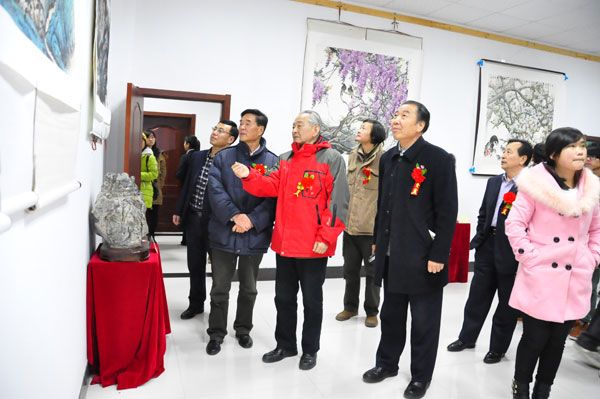 校党委副书记宋庆泽代表学校致开幕词。宋副书记表示,本次画展是冰球突破豪华版官方网站文化艺术建设的一件盛事,将把冰球官网艺术学科建设和内涵建设推向一个新的高度。邱振亮教授在开幕式上发言,他用“感谢”和“惭愧”来形容自己此刻的心情,希望大家多提意见,希望以后能够更好的作画,回报社会。最后,校党委书记冯宜明宣布画展开幕,到场领导和人文教育与艺术学院300多名师生代表一起参观了画展。