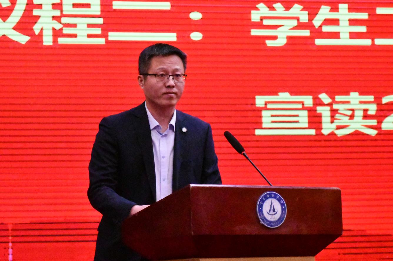 大会在雄壮的国歌声中拉开帷幕,学生工作部副部长王维智宣读了2022年度学生工作表彰决定。