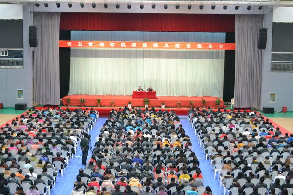 2月27日下午,山东省委高校工委副书记齐秀生来冰球突破豪华版官方网站为全体教师作师德师风建设专题报告。冰球突破豪华版官方网站领导班子全体成员及全体教职工聆听了报告会。报告会由校党委书记冯宜明主持。