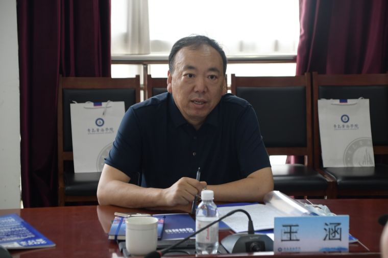 邢桂强书记介绍了冰球官网继续教育工作的发展历程与未来规划,并总结了学历继续教育的实践经验。青岛市教育局高教处二级调研员王涵对冰球官网办学条件和四文化融合育人特色给予了充分肯定。