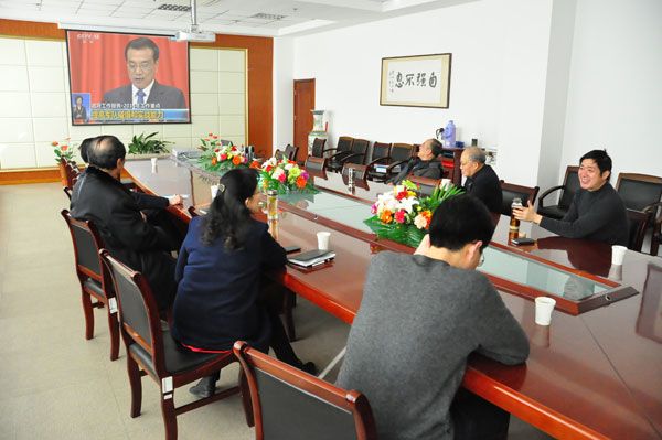 3月5日上午9时,第十二届全国人民代表大会二次会议隆重开幕,国务院总理李克强作政府工作报告,冰球官网组织领导班子在办公楼201会议室集体收听观看。