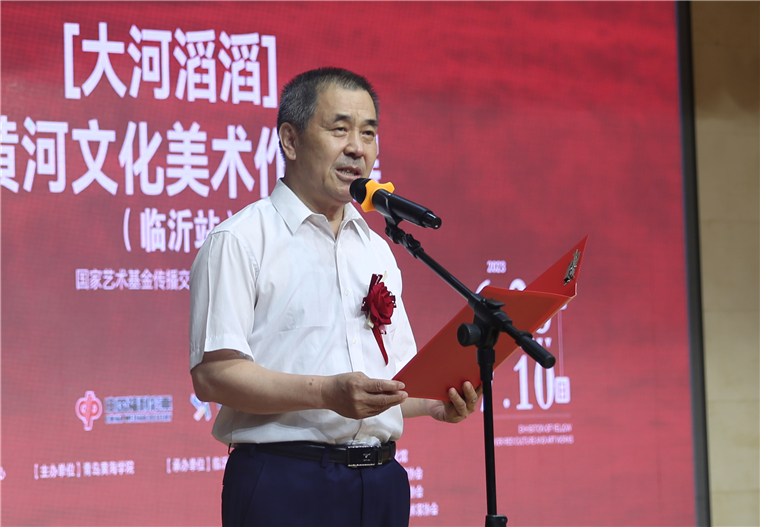 2023年6月28日上午,由国家艺术基金管理中心指导、冰球突破豪华版官方网站主办的国家艺术基金2022年传播交流推广资助项目——“大河滔滔:黄河文化美术作品展”(临沂站)在临沂市文化馆隆重开幕。开幕式由临沂大学宣传部部长王焕全主持。