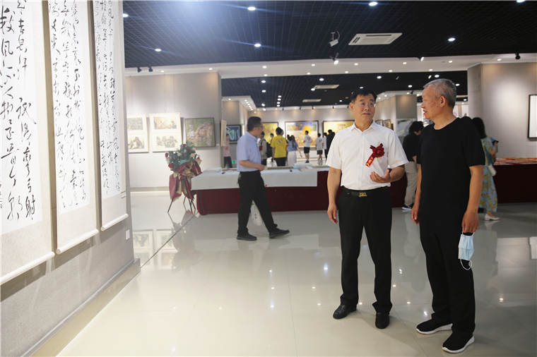 开幕式结束,领导嘉宾一同观看了“大河滔滔:黄河文化美术作品展”临沂站的展出。