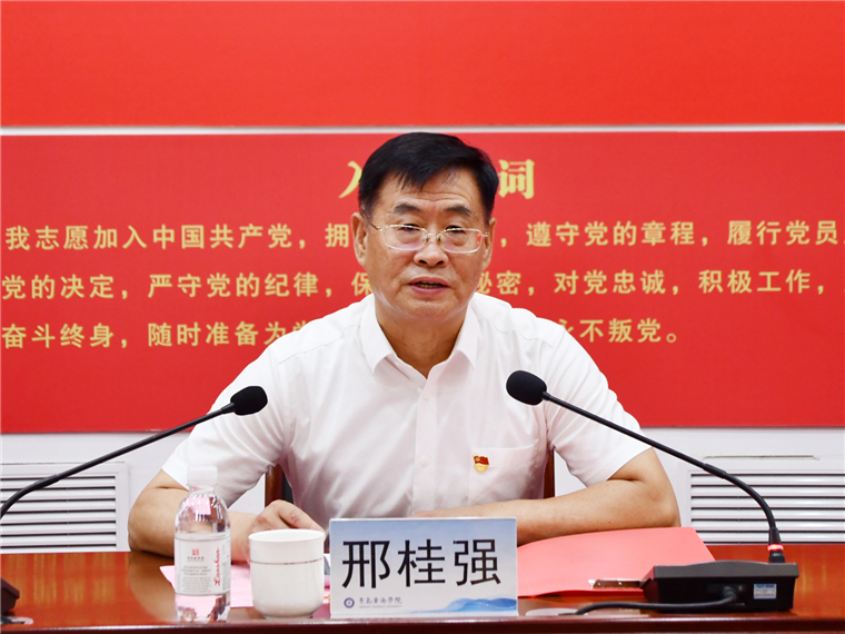 邢桂强在讲话中指出,要缅怀党史,锤炼党性,用信念扛起发展新使命。过去的一年,学校取得了一系列成绩,这些成绩的取得,是学校党委坚持不懈地加强和改进党的建设的结果,更是学校各级党组织和广大党员干部解放思想、开拓创新、真抓实干的结果;要牢记使命,对标先进,用担当书写发展新篇章。要继承和发扬党的优良传统和光荣作风,时刻牢记我们肩负的历史责任,把力量汇集到加快学校发展上来,以奋进者的姿态披荆斩棘,不断书写学校高质量发展的新篇章;要明确目标,乘胜快进,用党建凝聚发展新合力。要进一步明确党建工作目标、落实党建重点工作任务、持续加强党风廉政建设。要认真学习贯彻习近平总书记的重要指示精神,在党建引领下,明确目标、凝心聚力、担当作为、乘胜追击、奋勇争先,推进学校各项工作再上新台阶。