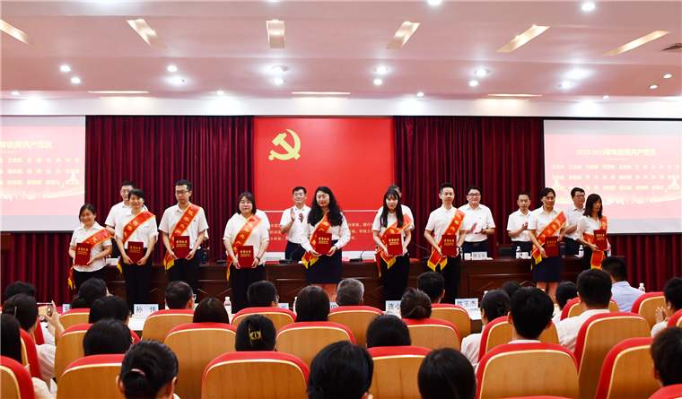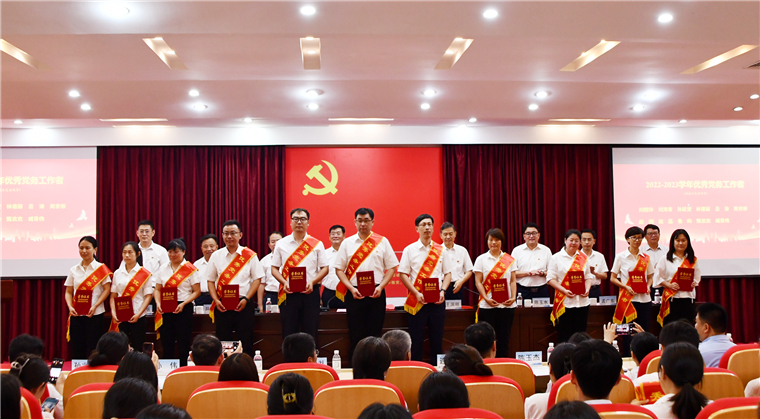 邢桂强代表党委,向学校各条战线上的广大共产党员致以节日的问候!向受到表彰的优秀个人和先进集体表示热烈的祝贺和崇高的敬意!