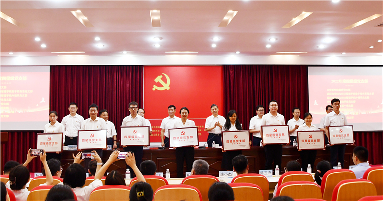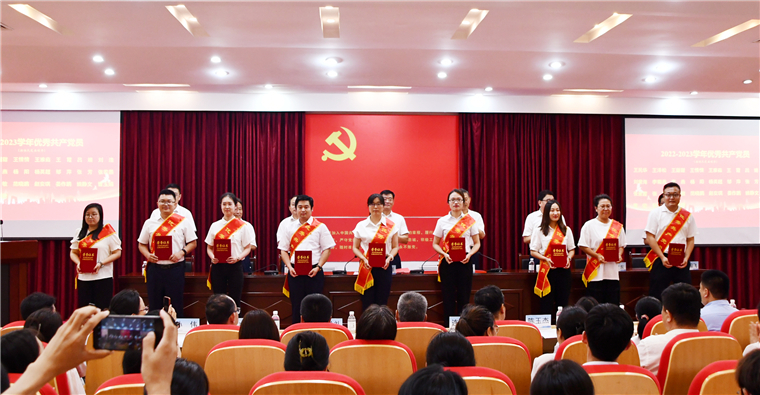 大会在庄严肃穆的国歌声中拉开帷幕。会上,党委副书记陈玉水宣读《中共冰球突破豪华版官方网站委员会关于表彰2022-2023学年优秀共产党员、优秀党务工作者、先进基层党组织的决定》《中共冰球突破豪华版官方网站委员会关于授予2022年度星级党支部荣誉称号的决定》。王民华等27名优秀共产党员、刘晓玲等11名优秀党务工作者、国际商学院与经济管理学院党总支等9个先进基层党组织、大数据学院教师党支部等8个四星级党支部、护理与健康学院教师党支部等4个五星级党支部受到学校党委表彰。