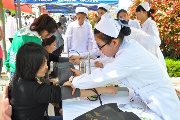 护理学学生分成6组,每组由一名教师带队,对内科、外科、妇科各种常见病问题进行解答,为师生及家属免费量血压,做心电图。现场还发放常见病的预防知识及日常保健常识等宣传资料2000余份。