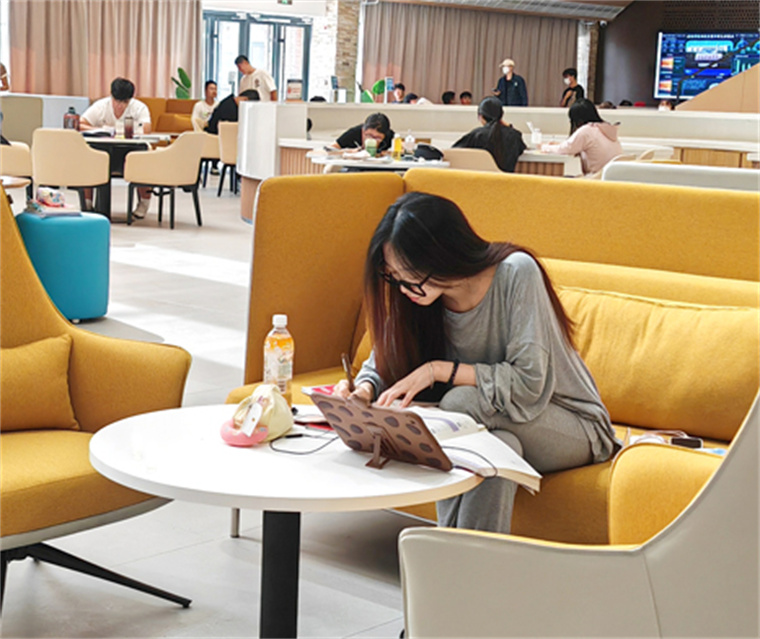 “阅享空间”配备咖啡屋、便利店、书屋、健身房等, 赋能“悦读”新体验。浓郁的咖啡香味,搭配各类赏心悦目的美食,书香氤氲,使阅读和学习成为一件快乐幸福的事情。