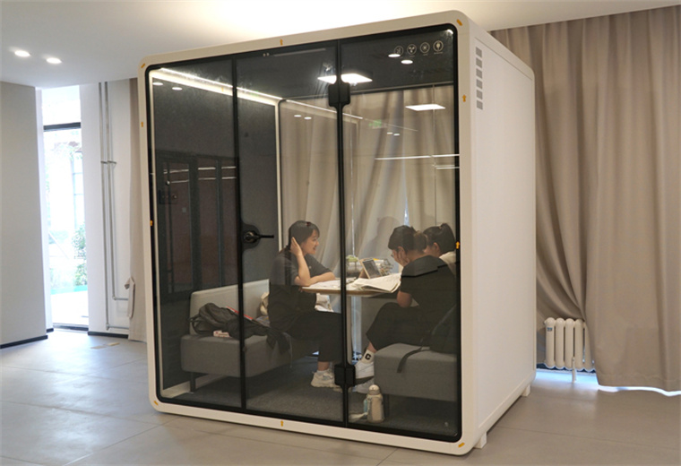 配备智慧大屏的多功能研讨室可用于学习、交流、研讨、小型会议等各类活动,可实现网上共享会议、网上共享课堂等。室内采用体感灯控系统,通过人体传感器自动开关灯光设备。