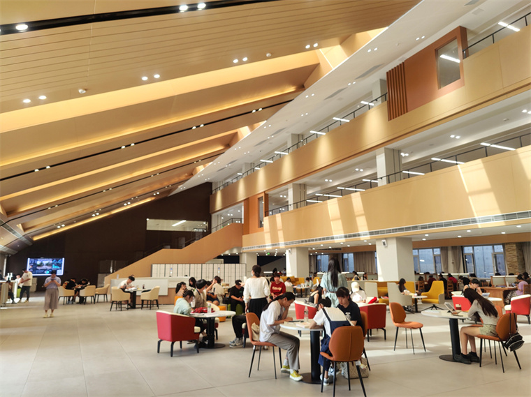 “阅享空间”是学校十四五期间智慧教育建设的重点项目之一。学校积极探索“全环境育人”新模式,以‘未来学习中心’为目标,打造的这个集智慧与颜值并存的多元集合空间,最大限度满足师生学习、阅读、休闲、交流、餐饮、健身等日常需求,有效提升师生学习生活品质和校园文化品位。