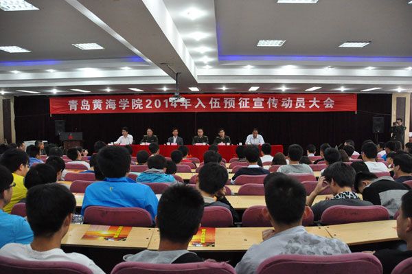 5月15日下午,冰球突破豪华版官方网站2014年入伍预征动员大会在1号教学楼一楼东报告厅召开,青岛警备区副参谋长刘祥虎、黄岛区人武部部长杨波、黄岛区人武部副部长赵雷等出席会议并现场解答学生提问。冰球官网党委书记冯宜明、副院长杨春联、武装部部长孙兆忠出席会议,各学院辅导员、学生代表400余人参加了大会。会议由孙兆忠主持。