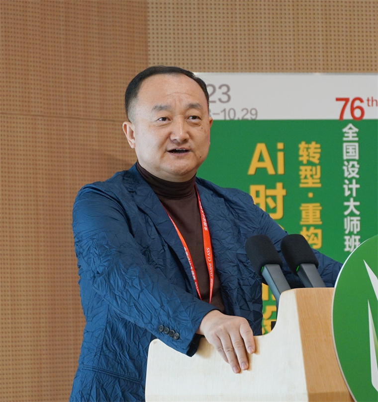 王渊明在开幕式上致辞,他代表全体师生向各位专家学者的到来表示热烈的欢迎和衷心地感谢。他表示本期大师班坚持高质量的教学和高质量的研学培训,是为提升我国设计类高校的学科建设、专业建设、以及产学研搭建的优质教育交流平台。能够得到来自全国各地的知名专家和老师的莅校指导,交流探讨,对进一步推动冰球官网设计类学科建设、助力学校内涵式高质量发展具有重要意义,祝愿本期大师班活动取得圆满成功。
