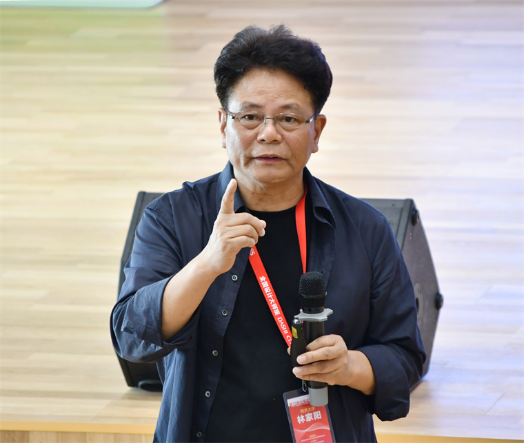 林家阳教授介绍“大师班”情况。全国设计大师班教育平台由留德学者林家阳教授创办并主持,1997 年始创于无锡轻工大学,2002 年移至同济大学,2021 年在北京服装学院成立全国设计大师班组委会。其师资由国内外顶级大师组成,旨在培养中国未来教育大师,故命名“大师班”。主体学员来自全国设计学类高校教师、硕博研究生和设计师,26 年来已在国内外举办了 75 期,培养了 6000 余位院长、系主任和教学骨干,其教育思想和教学效果受到全体学员的一致赞誉。“大师班”作为设计教育改革的第二课堂,其先导性和原创性有力地推进了中国设计和教育改革的进程。林家阳希望大家通过大师班的学习,培养创新精神、创新意识,提高社会责任感,教育责任感,让设计教育的改革意识传遍每个学校,通过教育改革实现新文科思想,实现教育和经济的融通。