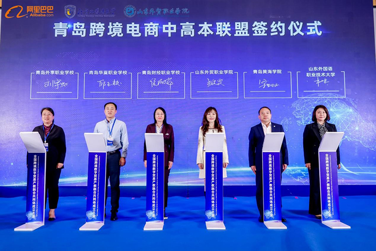 全国跨境数字贸易产教融合共同体由中国职业技术教育学会、全国电子商务职业教育教学指导委员会、中国对外贸易经济合作企业协会和中国服务贸易协会指导,阿里巴巴(中国)网络技术有限公司、北京外国语大学和山东外贸职业学院牵头,首批成员单位包括高等院校、行业协会、企业等340家,覆盖25个省级行政区。