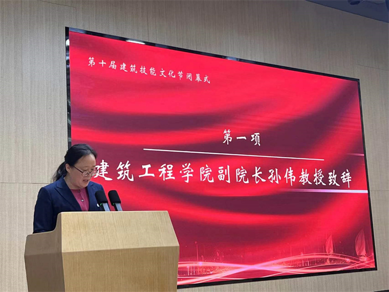 闭幕式开始,孙伟教授致辞。她指出此次文化节达到了锻炼队伍,提高技能,激发潜力,团结合作,为国家培养具有创新潜质的业务型人才的目的。希望同学们以本次技能文化节为契机,牢记重托,珍惜韶华,踔厉奋发,以青年人的志气、骨气、底气谱写新时代中国特色社会主义新华章。