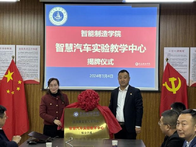 为推动智能制造学院车辆工程系专业建设发展,智能制造学院与青岛市黄岛区汽车商会及其会员单位携手合作,共同建立了智慧汽车技术服务基地暨智慧汽车实验教学中心。智能制造学院于3月4日成功举办了智慧汽车技术服务基地暨智慧汽车实验教学中心揭牌仪式。智能制造学院党总支书记陈玉杰、智能制造学院党总支副书记刘润强、院长助理周淑芳、车辆工程系教师代表出席了仪式,仪式由车辆系主任王可栋主持。