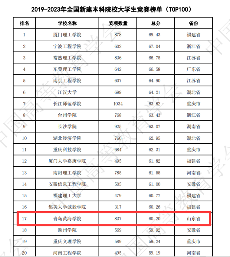 全国普通高校大学生竞赛榜单是我国第一个专注高校创新创业人才培养暨学科竞赛成果的排行榜,也是检验高校创新创业人才培养质量的重要标准之一。本次榜单共统计全国本科院校1218所,根据各高校获奖、组织和研究三个方面相关数据进行计算,排名结果具有权威性和影响力。