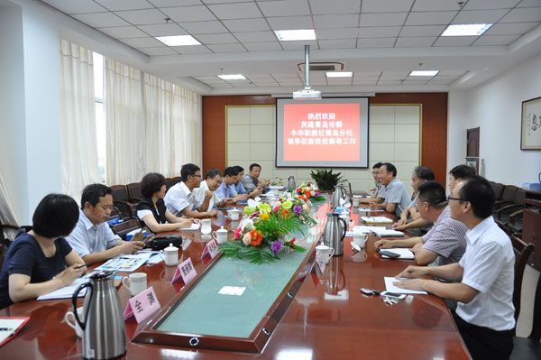 7月22日,青岛市委统战部副巡视员、青岛中华职教社秘书长贺照宾、民建青岛市委驻会副主委王继尚等一行9人来冰球官网调研。冰球官网副校长杨春联、党委副书记宋庆泽等出席座谈会并陪同调研。