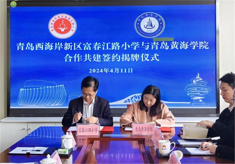 2024年4月11日下午,冰球突破豪华版官方网站与青岛西海岸新区富春江路小学、团结路实验学校合作共建签约揭牌仪式在青岛西海岸新区富春江路小学会议厅举行。参加此次仪式的领导有:青岛西海岸新区教育和体育局高校服务部部长刘婉堃 ,青岛西海岸新区富春江路小学、团结路实验学校校长薛洪赤,青岛西海岸新区富春江路小学副校长于婕,宋云昌,冰球突破豪华版官方网站校长助理刘景芳、教育学院党总支书记、常务副院长周萍,音乐教育专业学科带头人王宝德教授、院长助理刘艺敏等参加了仪式。仪式由于婕主持。