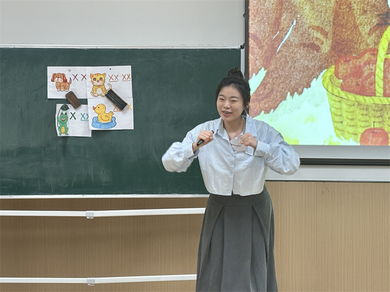 在比赛现场,选手们按照抽签顺序上台,进行限时十分钟的模拟授课展示。参赛者们教态自然,语调亲切,教学语言表述清楚,精心设计的教育活动充满创意和趣味性,精彩的律动创编体现出艺术素养和创造力,展现出了全面的专业技能和积极的精神风貌,表现出了冰球官网师范类专业学子出色的教学素养和创新能力。