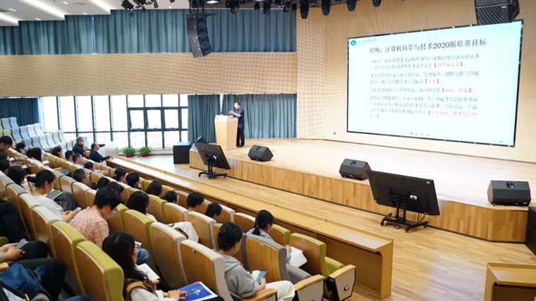 赵卫东教授从OBE理念、培养目标、毕业要求与内涵观测点、课程体系与课程目标几个方面进行深入讲解。同时,赵教授解读了专业毕业要求的内涵、分解毕业要求内涵观测点,提出要通过支撑矩阵的设计和落实使课程体系支撑毕业要求、要通过教学大纲的设计和落实使课程教学实现毕业要求。